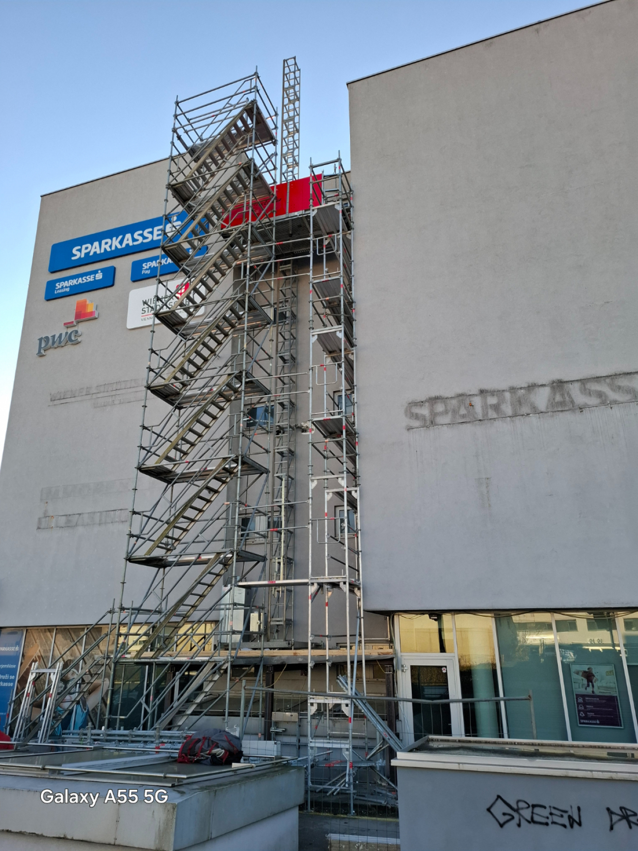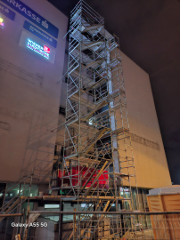 Zunanje stopnišče odra je sestavljeno iz stopnic, ki so visoke 2m. V kolikor gre za dostop samo v eno etažo, se lahko višina te etaže prilagodi s prvim nivojem stopnišča, ki je lahko manj kot 2m. Etaže objekta pa so visoke vsaj 2,75m ali več in kadar je potrebno omogočiti iz stopnišča dostop do več etaž, je potrebno vmesno prilagajanje, ki zna biti zahtevnejše.